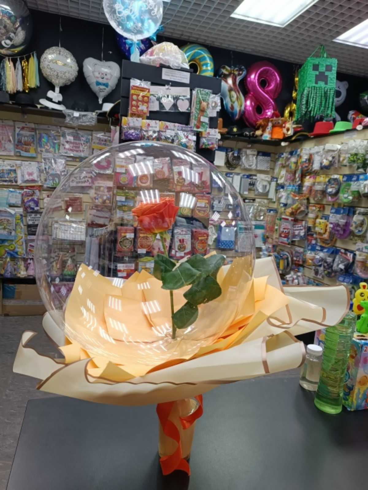 Бабл бокс «Роза в шаре» — изящный и запоминающийся подарок, который сразу создаёт особое настроение. Роза внутри прозрачного шара выглядит легко, нежно и красиво, поэтому композиция отлично подходит для сюрприза, который хочется вручить с эмоцией.