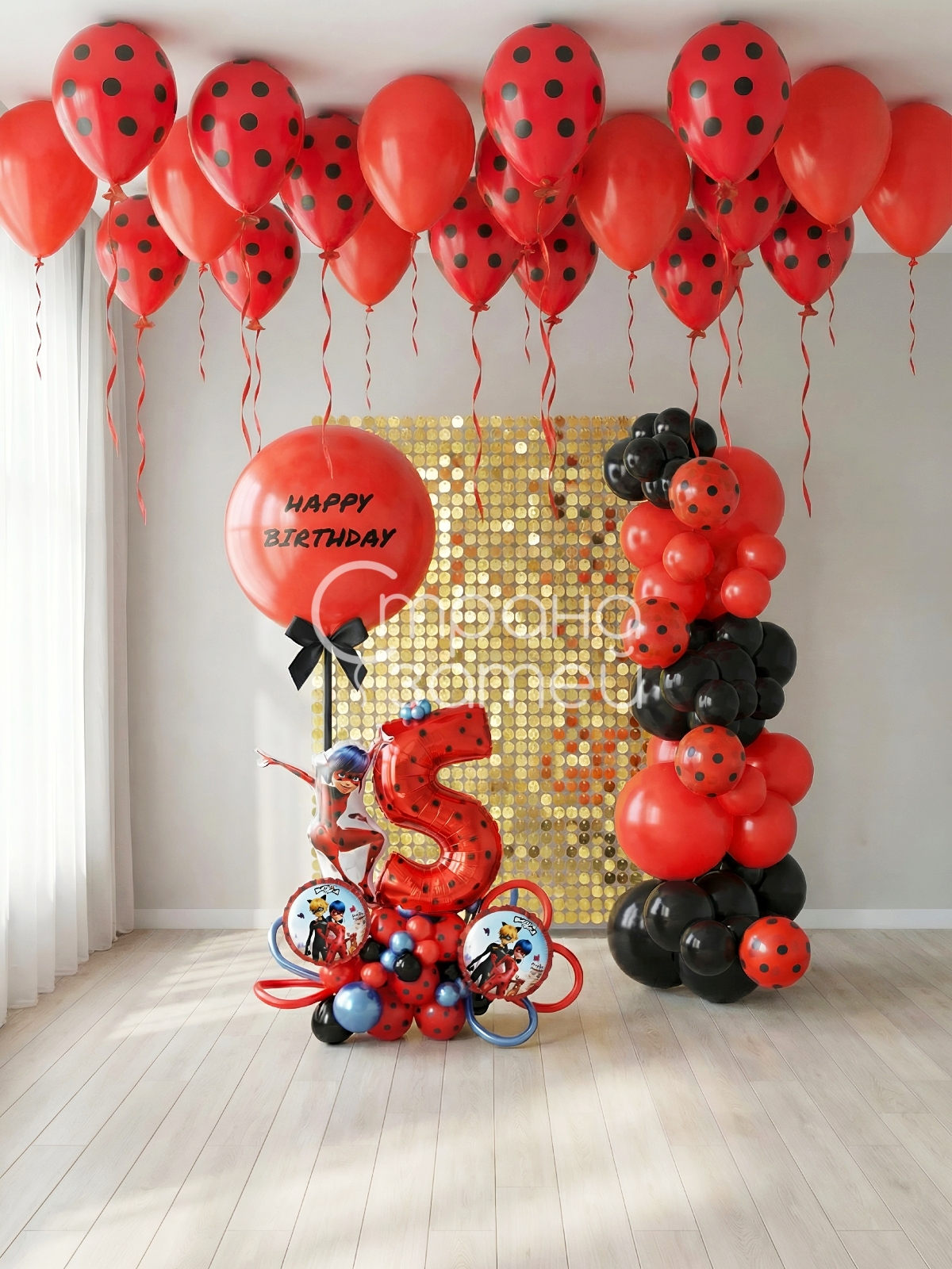 Фотозона на День рождения девочки с пайеточным фоном и воздушными шарами — эффектное оформление для кафе, ресторана или выездного праздника.