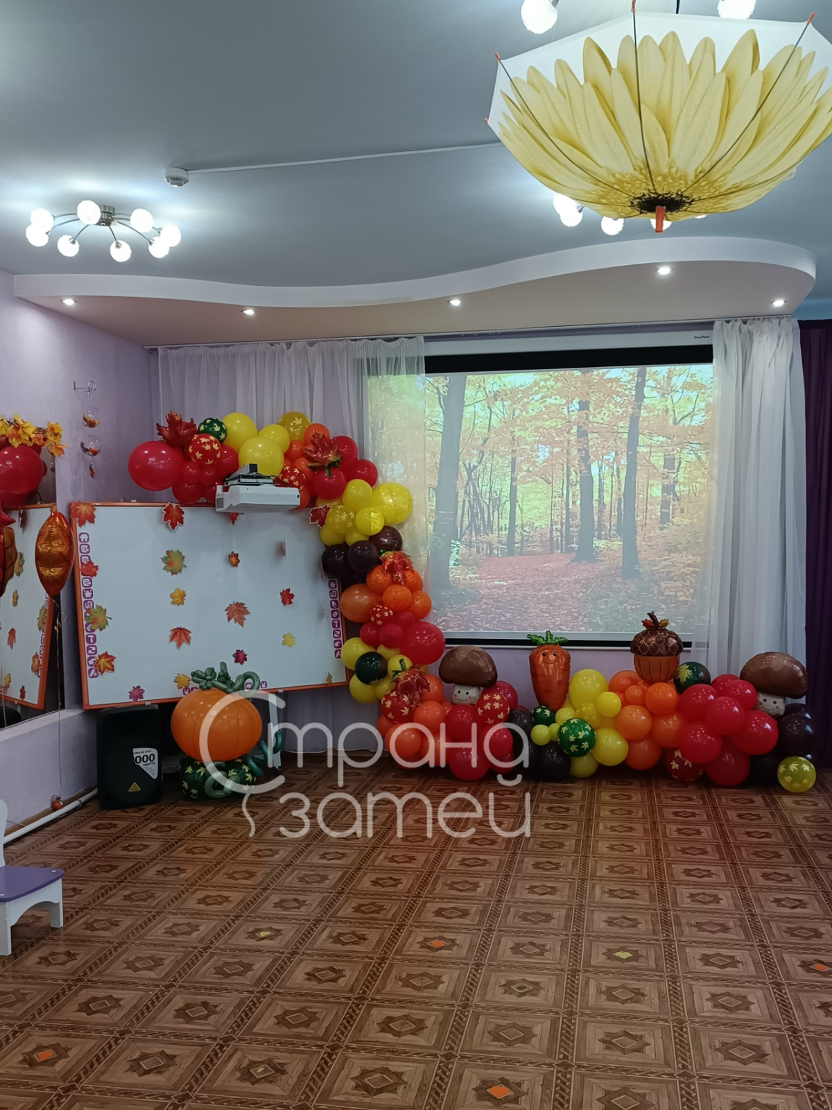 Оформление зала на праздник Осени в детском саду «Золотая пора»