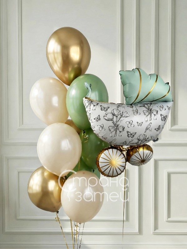 Сет шаров «Мятная коляска» — нежная композиция на выписку