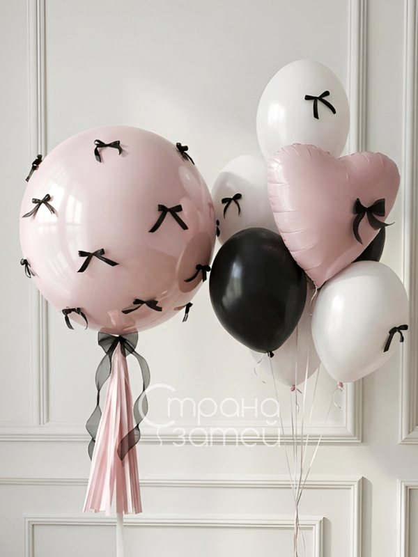 Сет шаров «Пудра и бантики» — нежная композиция с сердцем