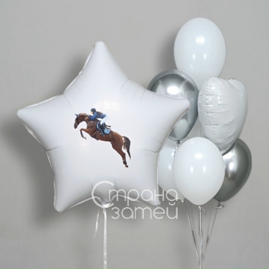 Звезда 32" с фотографией Фонтан из 7 шаров: 24 пастель, 2 хром, сердце 18"