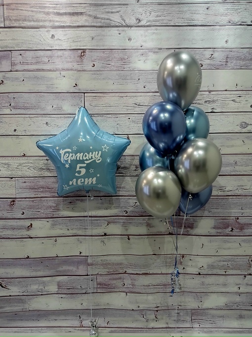 - Большая звезда 32" с надписью на грузике - 7 шаров хром на грузике Цветовая гамма на ваш выбор