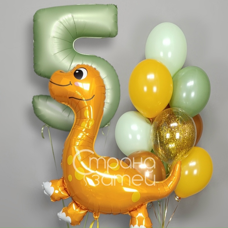 Цифра 40" Фигура "Динозаврик" Фонтан из 10 шаров: 3 хром, 6 пастель, 1 с конфетти