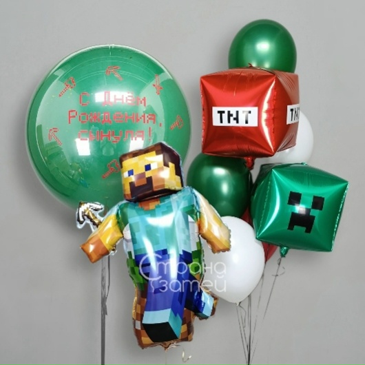 Фонтан из 7 шаров : куб Крипер, куб ТНТ, 3 металлик, 2 пастель