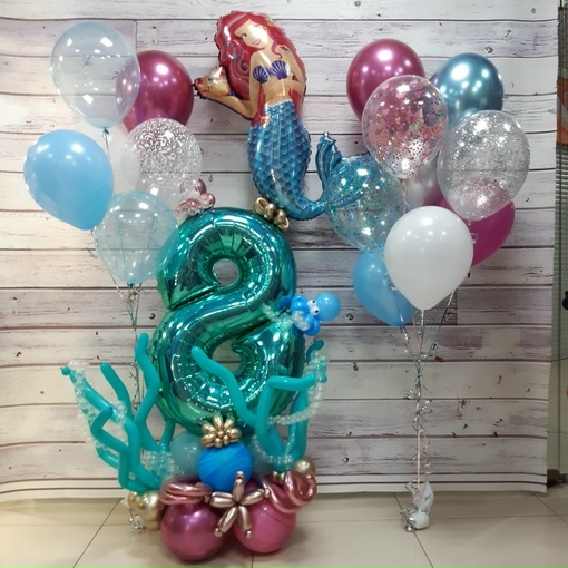 Цифра на основании с декором и русалкой подойдет для оформления дня рождения в морском стиле.