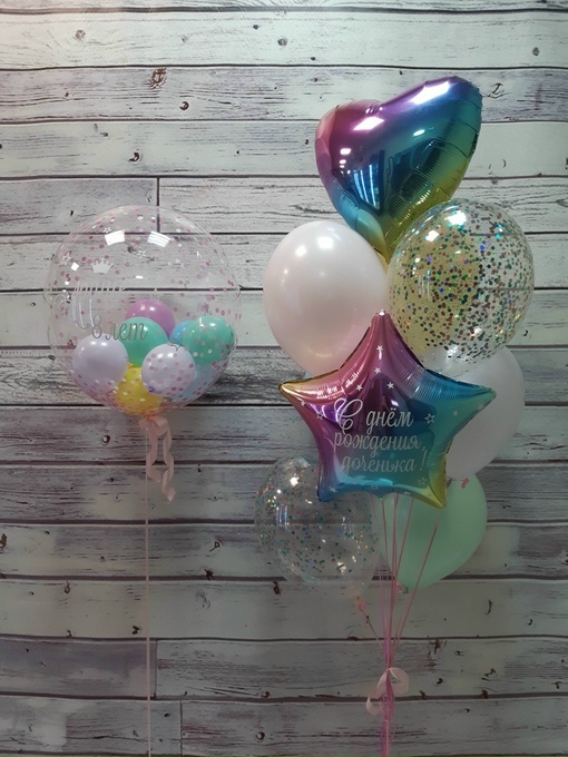 -Шар Баблс 24"/55 см с наполнением и надписью, на грузике