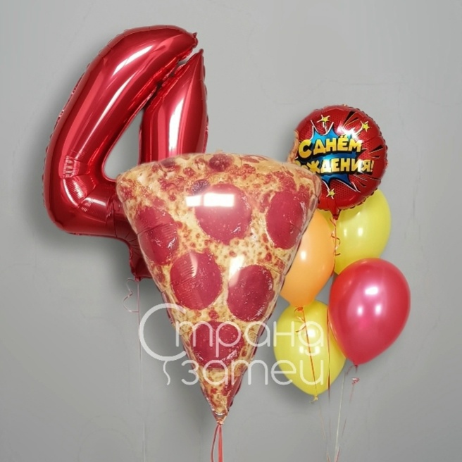 Цифра 40" / 102 см Фигура Пицца Фонтан из 5 шаров: 4 пастель, 1 круг 18" с рисунком