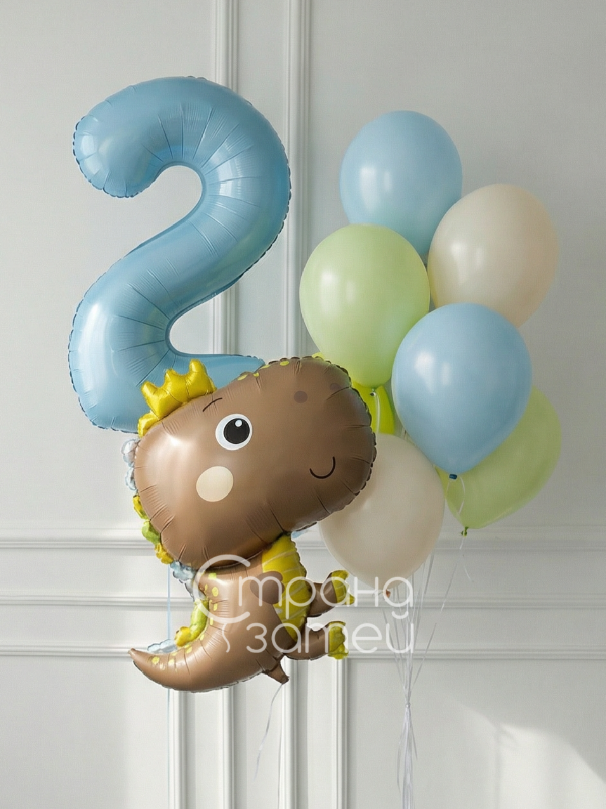 Сет шаров «Дино-именинник» — милое оформление дня рождения малыша. Большая цифра и добрый динозаврик в сочетании с пастельным фоном создают уютное настроение и отлично смотрятся на фото, украшая комнату или фотозону.