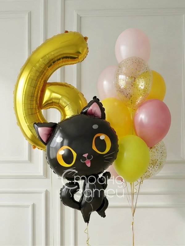 Сет шаров «Котёнок и цифра» — нежная композиция для девочки