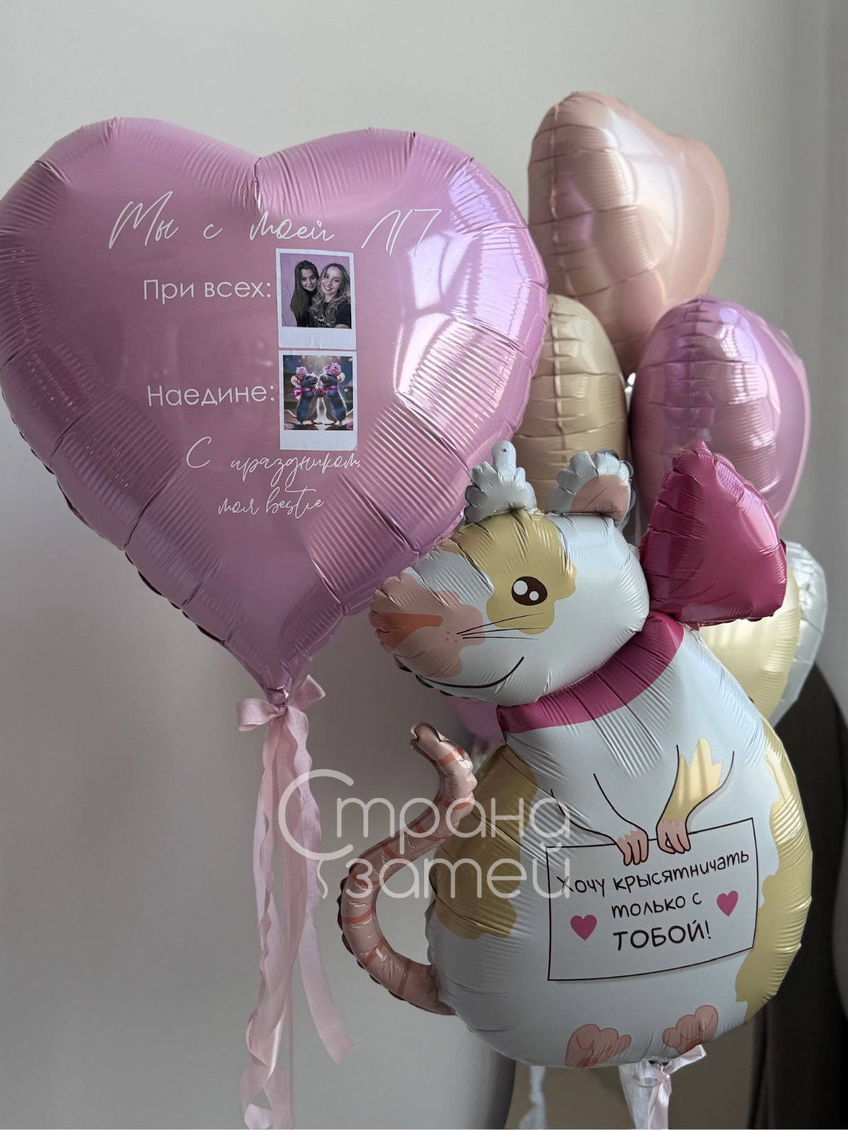 Сет шаров «Крыска и сердце с фото»
