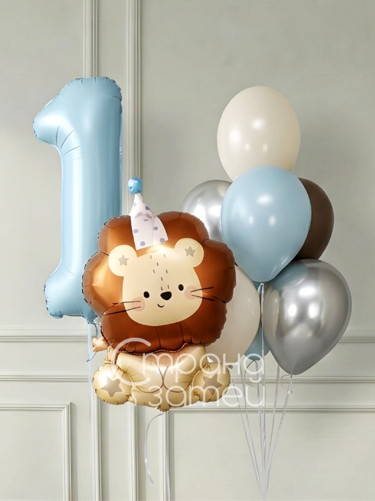Сет шаров «Львёнок на годик» — нежное оформление в голубо‑карамельной гамме для дня рождения мальчика. Фигура львёнка и пастельный фонтан создают тёплую атмосферу и отлично смотрятся на фото. Подойдёт на годик и станет отличным вариантом для мальчика.