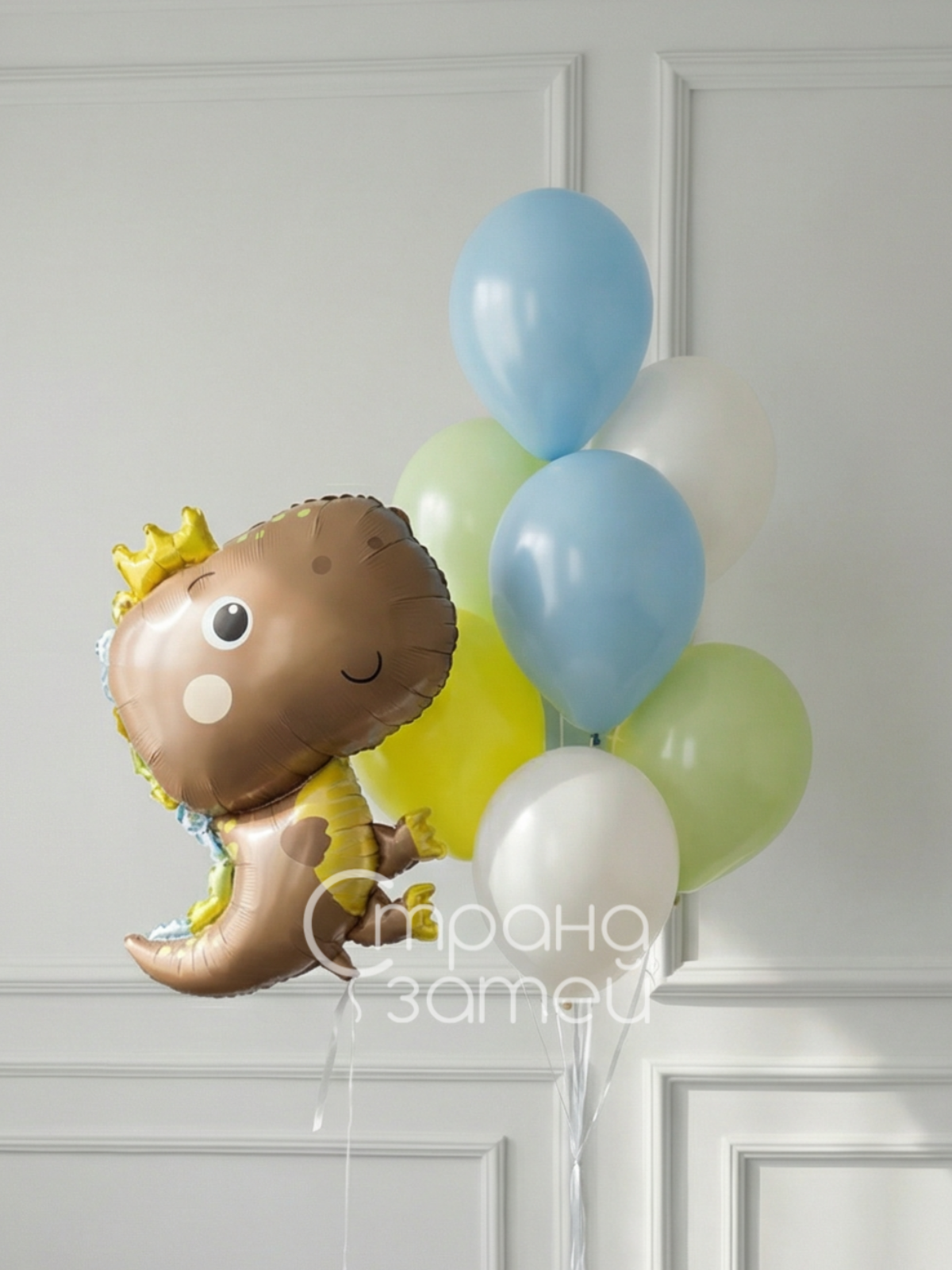 Сет шаров «Нежный динозаврик» — аккуратное оформление детского праздника в мягкой пастельной гамме. Фигура динозаврика и фонтан шаров создают тёплое настроение и отлично смотрятся на фото, подойдя как для дома, так и для детского центра.