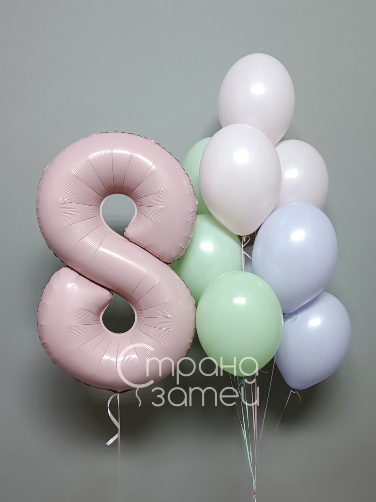 Цифру можно выбрать под возраст ребёнка или оставить 8 как символ праздника, а оттенки пастельных шаров по согласованию слегка скорректировать в пределах похожей мягкой палитры.