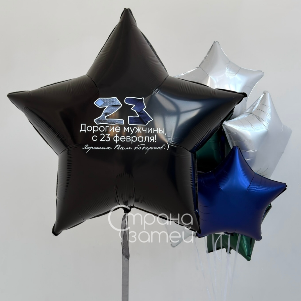Сет «Звезда мужского праздника» оформлен в строгой мужской гамме и подойдёт для оформления офиса или дома. Большая чёрная звезда с поздравлением выделяет главный центр композиции, а фонтан из звёзд создаёт объём и ощущение полноценной фотозоны даже в небольшом пространстве. Такой набор уместен как для личных, так и для корпоративных поздравлений.